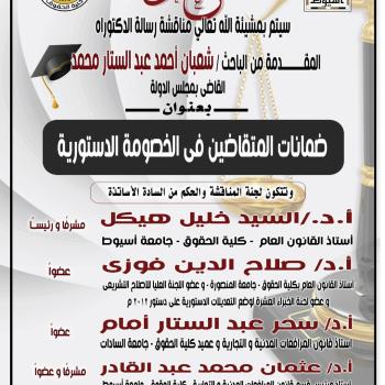 تعلن كلية الحقوق جامعة أسيوط عن اسماء الطلاب المشاركين في نموذج محاكاة مجلس النواب الذي يتم تحت رعاية السيد الأستاذ الدكتور/ شحاته غريب شلقامى عميد الكلية، والسيد الأستاذ الدكتور/ رجب محمد السيد…