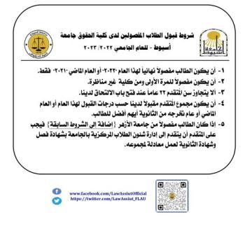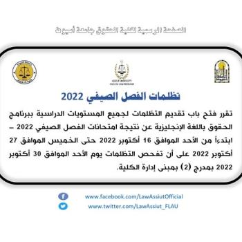 مواعيد التسجيل لطلاب كلية الحقوق منذ السبت ١٥ أكتوبر وحتى الثلاثاء ١٨ أكتوبر.