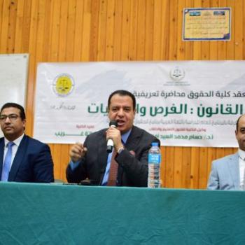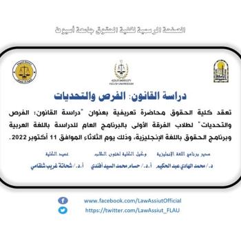 من فعاليات المحاضرة التعريفية "دراسة القانون: الفرص والتحديات" التي أقيمت بإشراف إدارة كلية الحقوق لطلاب الفرقة الأولى بالبرنامج العام للدراسة باللغة العربية وطلاب الفرقة الأولى ببرنامج الحقوق…