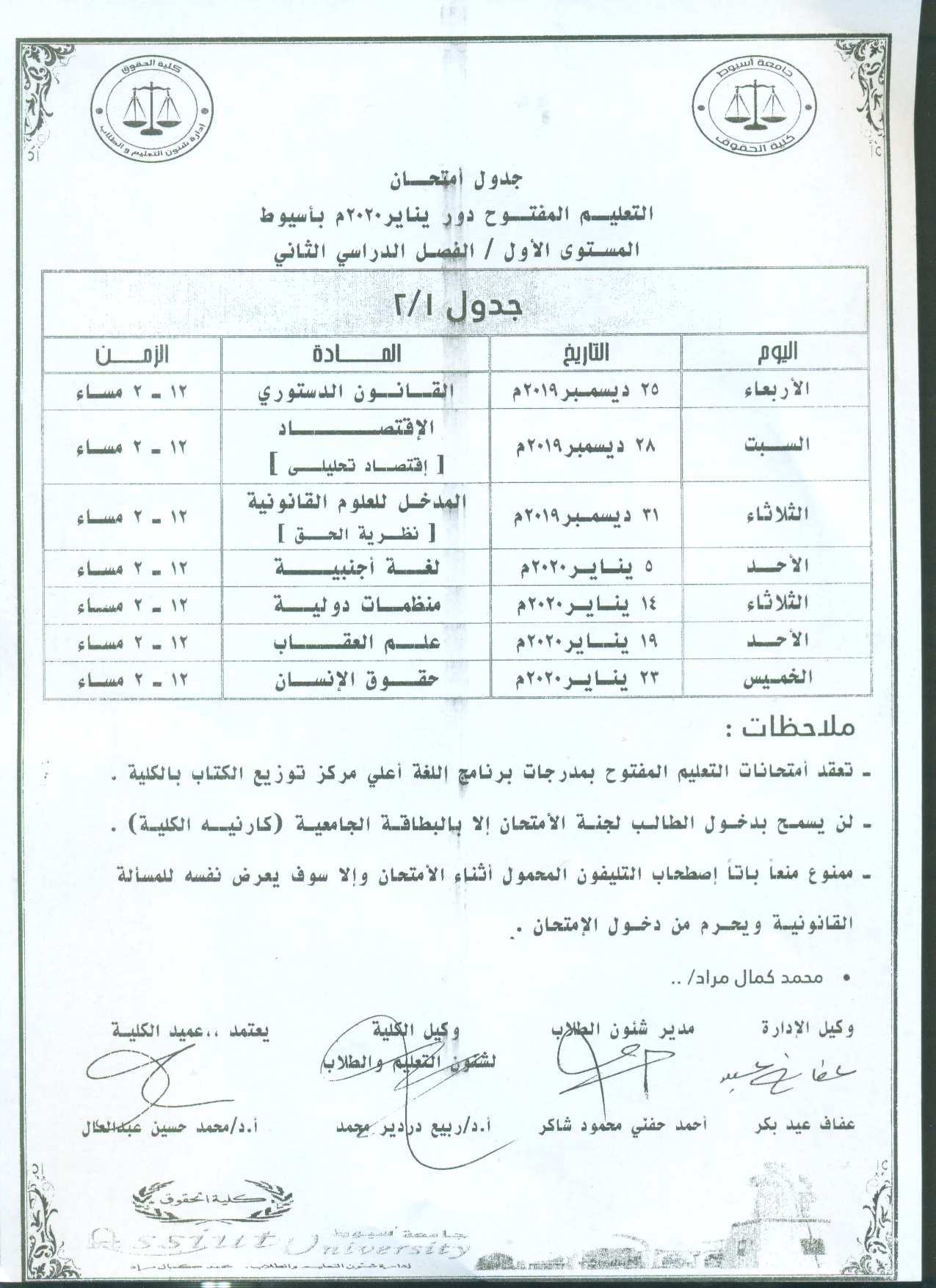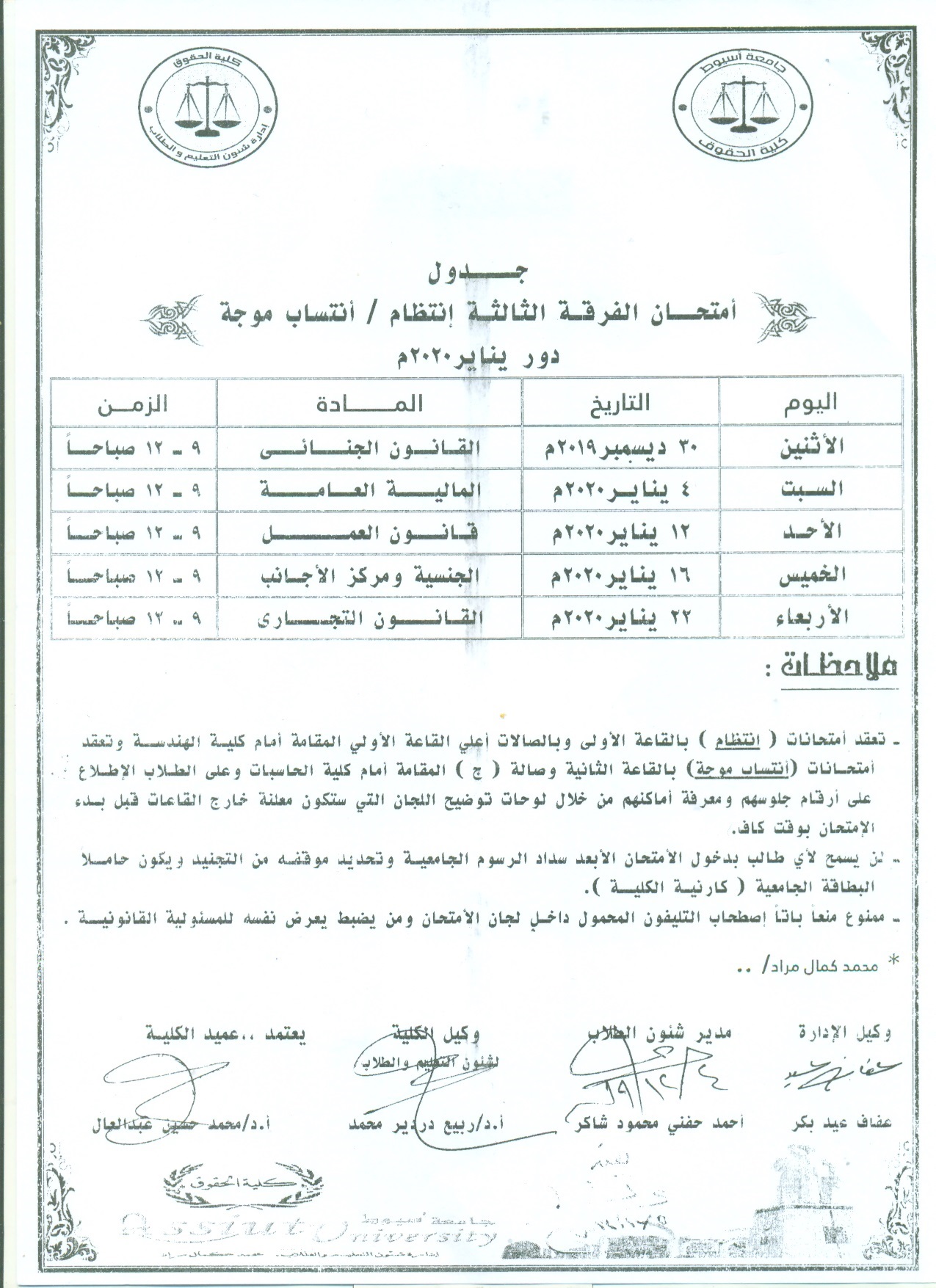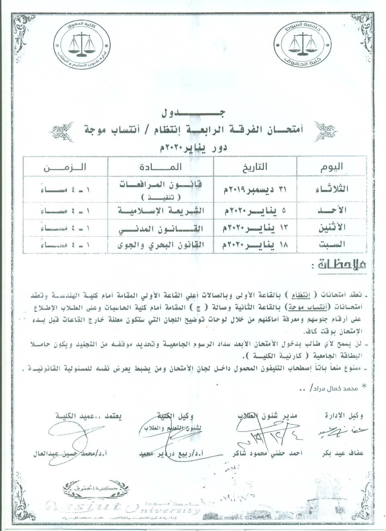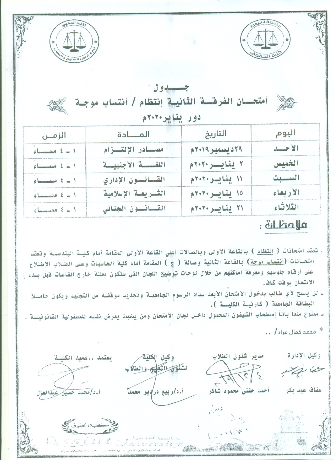 ينعي ببالغ الآسي السيد الأستاذ الدكتور /عميد كلية الحقوق والسادة الوكلاء والسادة رؤوساء الاقسام والسادة أعضاء هيئة التدريس ومعاونيهم والعاملين بالكلية