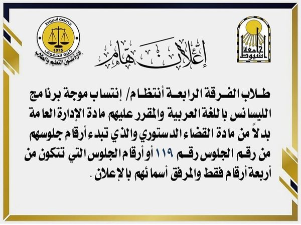 تنبيه هام لطلاب الفرقة الثالثة.