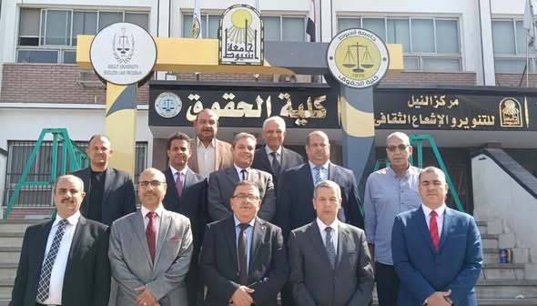 وكان في استقباله الدكتور دويب حسين صابر، عميد كلية الحقوق والمستشار القانوني لرئيس جامعة أسيوط، والدكتور حماد مصطفي عزب عميد الكلية الأسبق، والدكتور معمر رتيب محمد وكيل لشئون تنمية المجتمع وتنمية البيئة، والدكتور رجب محمد السيد وكيل الكلية لشئون التعليم والطلاب، والدكتور أحمد سليمان وكيل الكلية لشئون الدراسات العليا والبحوث، ولفيف من السادة أعضاء هيئة التدريس والجهاز الإداري بالكلية.