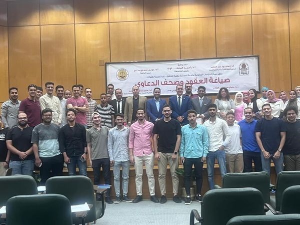 صورة تذكارية مع المشاركين في محاضرة اليوم والتي تحمل عنوان صياغة العقود الادارية القاها الاستاذ الدكتور رجب الكحلإوي استاذ ورئيس قسم القانون العام ووكيل كلية الحقوق لشئون التعليم والطلاب ضمن محاضرات دورة " صياغة العقود وصحف الدعاوي " وفي حضور سعادة الاستاذ الدكتور عثمان عبد القادر استاذ ورئيس قسم قانون المرافعات ومدير مركز الدراسات القانونية بكلية الحقوق.