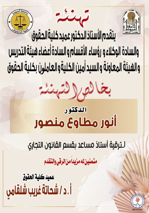 Congratulations to Dr. Anwar Mutawa Mansour for the promotion. Assistant Professor, Department of Commercial Law 11 May 2023