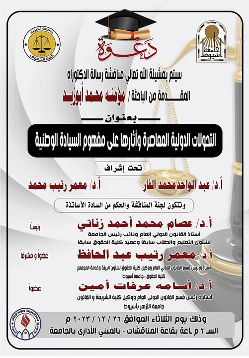 Discussion of the doctoral dissertation by the researcher/Moumina Muhammad Abu Zaid Othman under the title “Contemporary international transformations and their effects on the concept of national sovereignty”