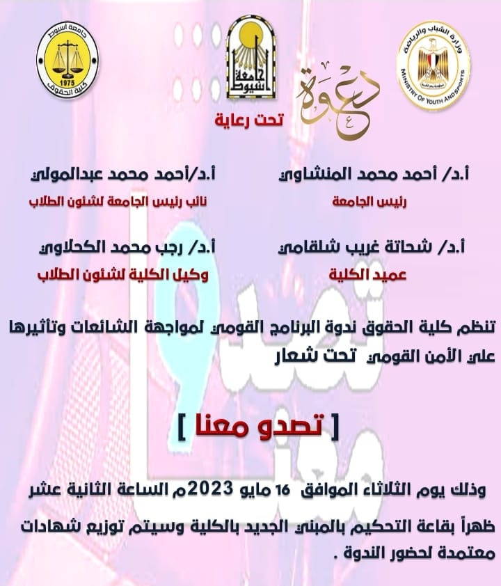 The Faculty of Law organizes a symposium on the national program to confront rumors and their impact on national security under the slogan "Stand up with us".