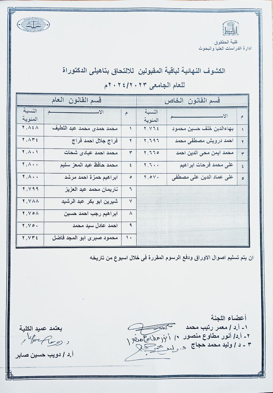 Final lists for the rest of those accepted to join the doctoral qualifications for the academic year 2023/2024 30 January 2024