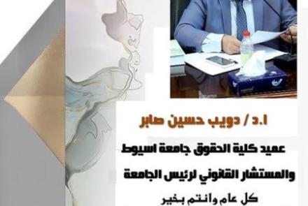 أبنائي وبناتي الطلبة والطالبات ، أهلا وسهلا بكم في رحاب كلية الحقوق جامعة اسيوط ، تلك الكلية التي خرجت العديد من الاجيال والذين يتقلدون أرفع المناصب في العديد من الجهات والهيئات القضائية في مختلف ارجاء البلاد ، كما تزخر المحاكم بالعديد من رجال القانون من المحامين الذين يشار اليهم بكل احترام وتقدير ، فضلا عن العديد منهم ممن ينتمي للجهاز الاداري بالدولة وبمختلف الوزارات والهيئات كالجهاز المركزي للمحاسبات والضرائب والجمارك والشهر العقاري وغيرهم الكثير ، فاينما ذهبت تجد زملائك من خريجي الكلية في كل مكان يدافعون عن الحق والعدل وسيادة القانون فاهلا وسهلا بكم في رحاب كليتنا العريقة  وعليكم بالجد والاجتهاد وتحصيل العلم من اساتذتكم الاجلاء. ونحن نرحب بكم وقلوبنا مفتوحة نحوكم قبل مكاتبنا ونمد اليكم ايدينا بكل عطاء