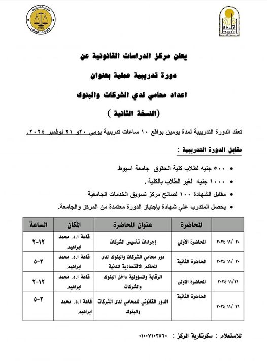 دورة تدريبية بعنوان إعدادمحامي الشركات والبنوك النسخة الثانية
