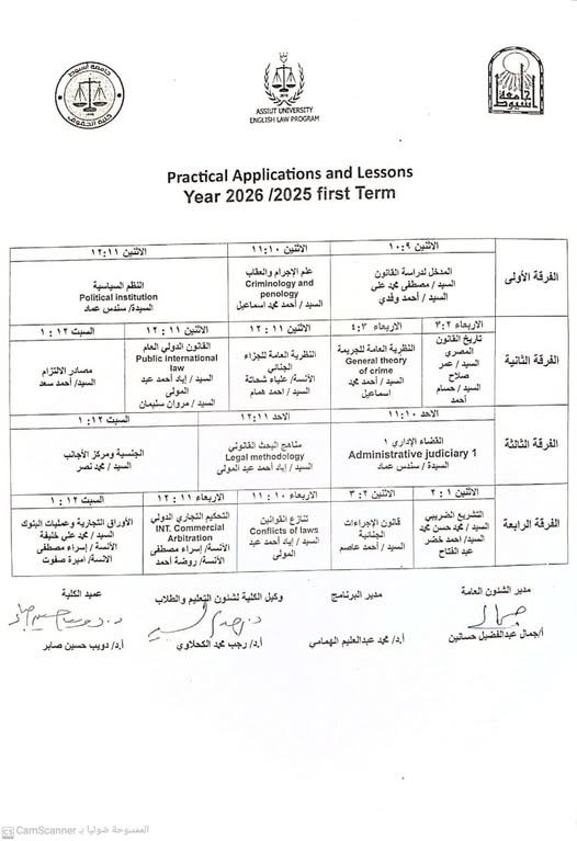 جدول سكاشن برنامج الحقوق باللغة الإنجليزية بدءاً من السبت الموافق ٤ اكتوبر.