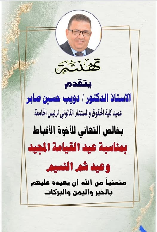 خالص التهنئة للاخوة الاقباط بمناسبة عيد القيامة المجيد وعيد شم النسيم