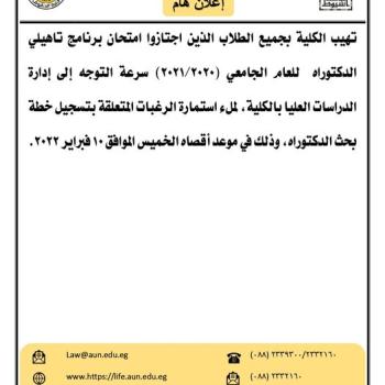 The college calls upon all students who passed the doctoral qualification program exam for the academic year (2021, 2022) to quickly go…