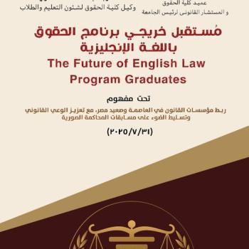 تعتزم كلية الحقوق بمناسبة اليوبيل الذهبي للكلية اقامة فعاليات المُبارة النهائية لمسابقة التحكيم الصوري باللغة الإنجليزية بنسختها الثانية، وذلك يوم السبت الموافق ٢ / ٨ / ٢٠٢٥ الساعة التاسعة صباحاً…