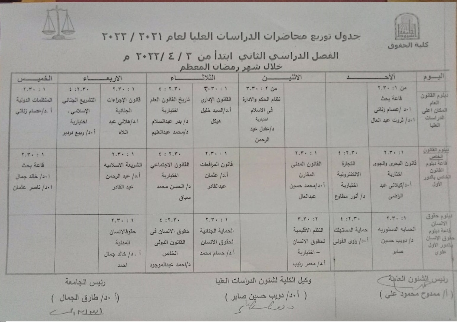 Professor Dr. Abd al-Rahman Muhammad Muhammad Abd al-Qadir Professor of Islamic Law - Faculty of Law - Assiut University - Musharraf and member of the jury,