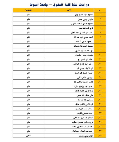 علي الطلاب الآتي اسماؤوهم ضرورة الحضور لمكتب عميد الكليه يوم الاثنين القادم الساعه 11 صباحا
