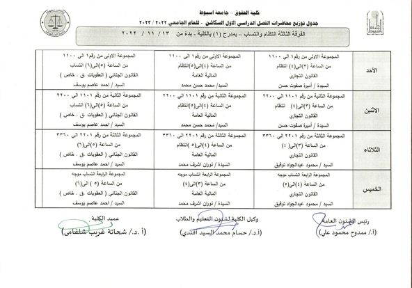 قوائم مجموعات الدروس التطبيقية "السكاشن"، الفصل الدراسي الأول للعام الجامعي {2022/ 2023}، ليسانس الحقوق باللغة العربية: