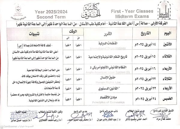 English Language Law Program Exam Schedules 18 March 2025 English Language Law Program Exam Schedules