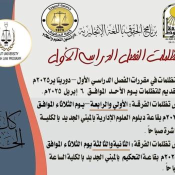Lectures by Dr. Adel Abdel Rahman for the third year of the Faculty of Law, Arabic Department, on the subject of inheritance and wills.