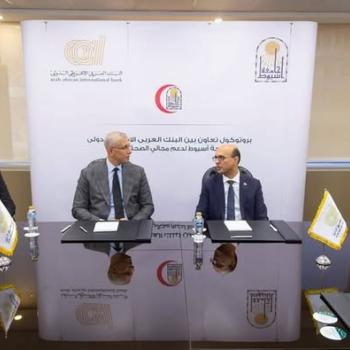 Prof. Ahmed El-Menshawy, President of the University, and Prof. Tamer Mohamed Wahid, Vice Chairman and Managing Director of the Arab African International Bank, sign a cooperation protocol to…