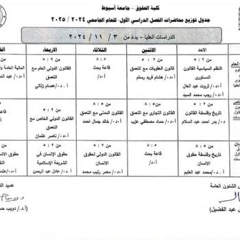 Distribution schedule for postgraduate diploma lectures, first semester 2024/2025