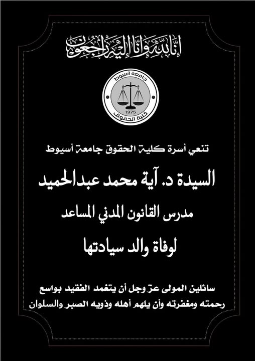 of Law, Assiut University, wishing success and lasting progress for our prestigious