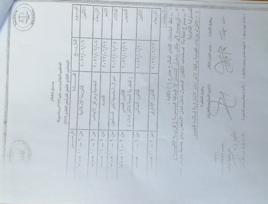 Open Education Exam Schedule May 2022 AD in Assiut, Level Three, Second Semester (2/3)