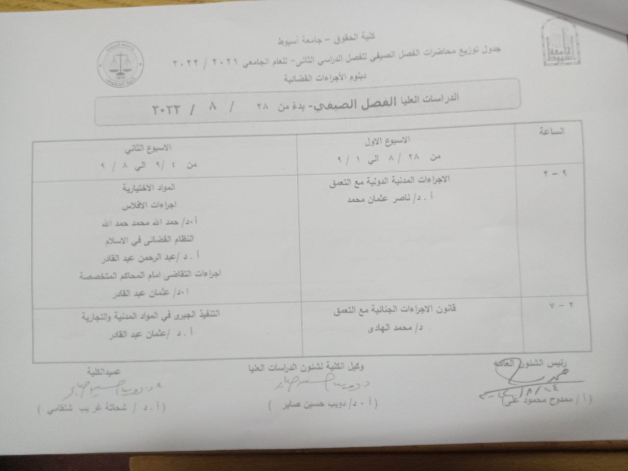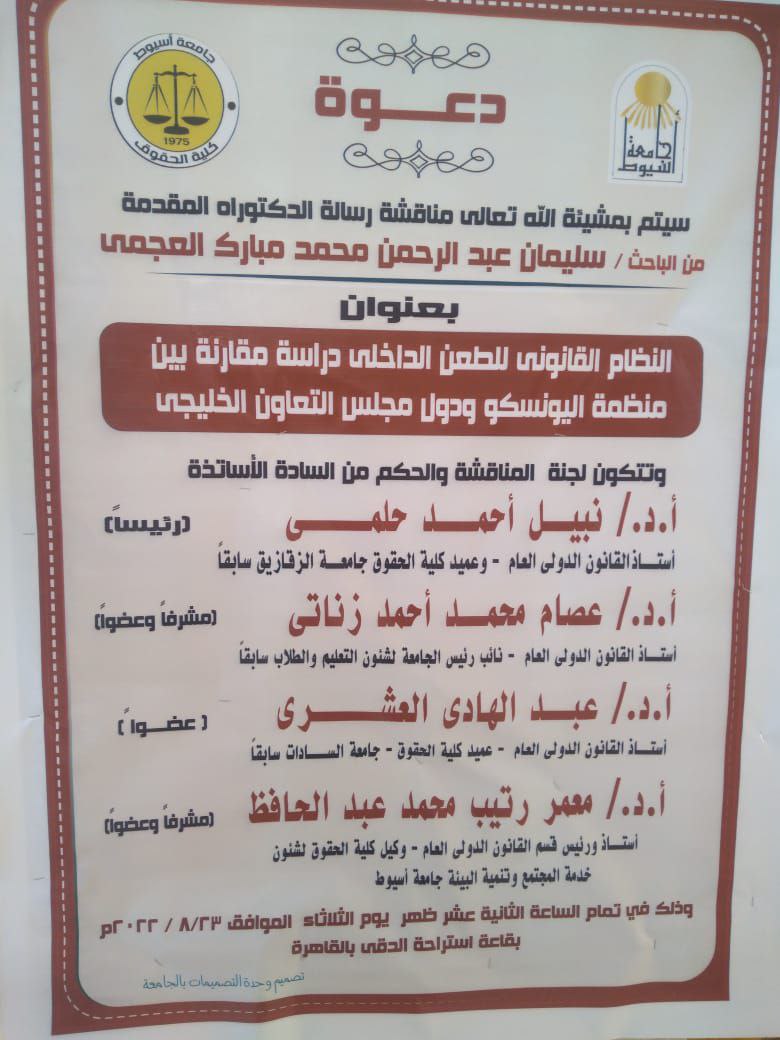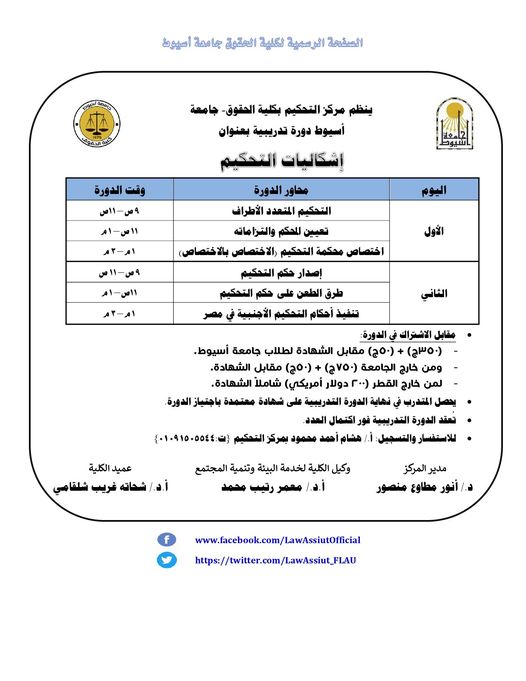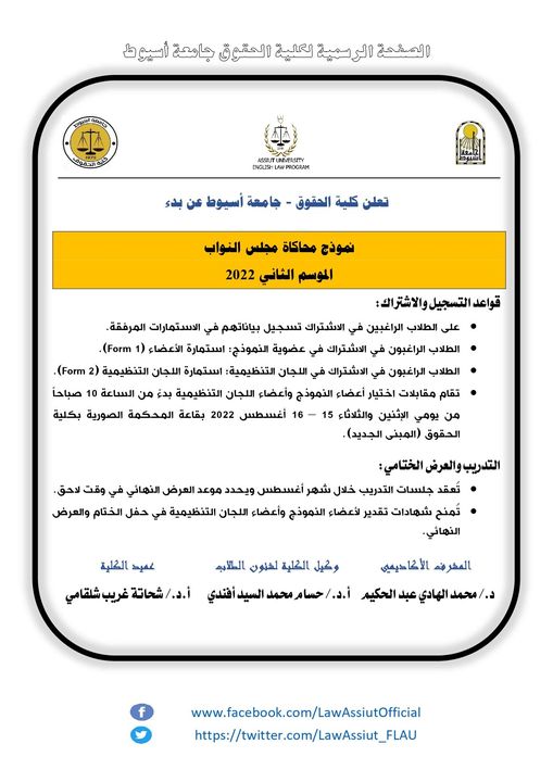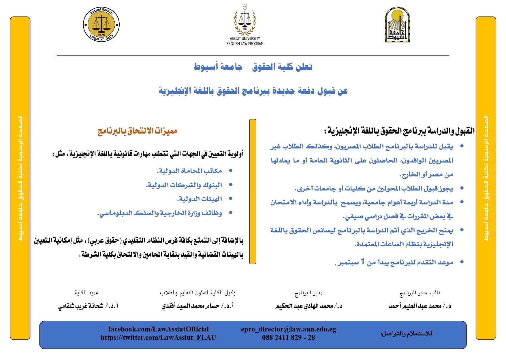 Dr.. Mohamed El Hadi Abdel Hakim - Director of the English Law Program and Academic Supervisor Mr. Dr. Hossam Mohamed El-Sayed Effendi - Vice Dean for Education and Student Affairs Mr. Dr. Shehata Gharib Shalgami - Dean of the Faculty of Law