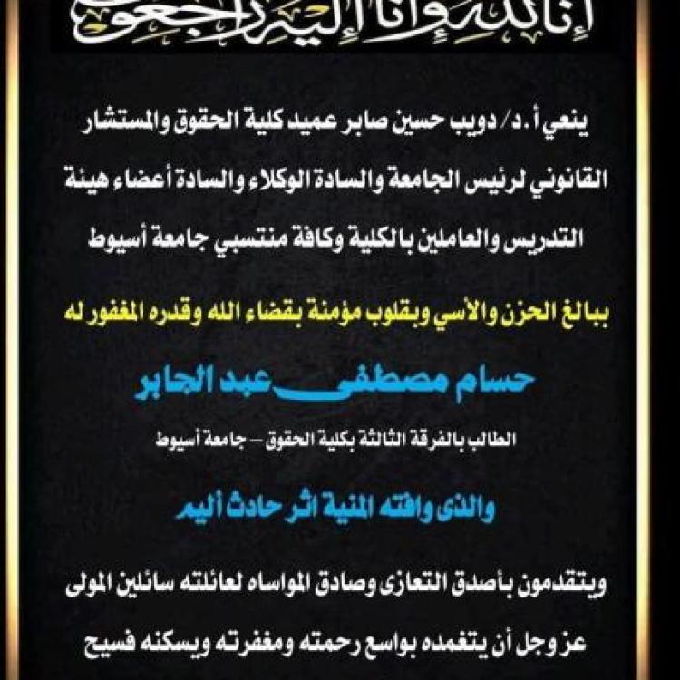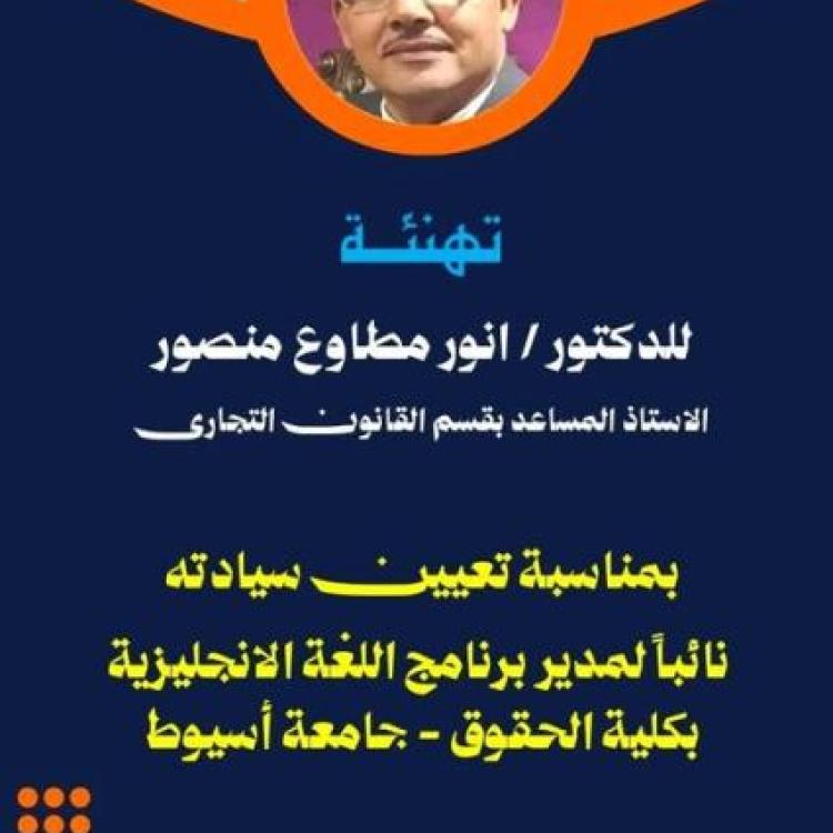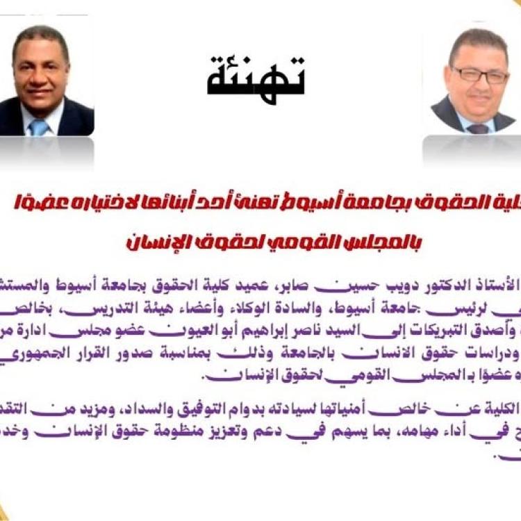 The Faculty of Law at Assiut University congratulates Counselor Mahmoud Helmy El-Sherif on his appointment as Minister of Justice.