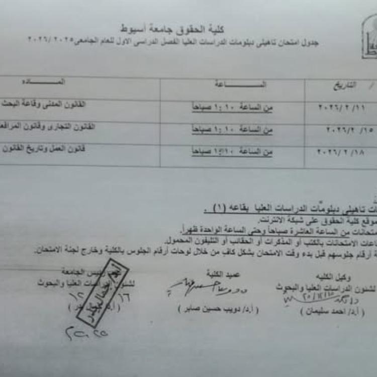 The Faculty of Law at Assiut University extends its sincerest congratulations to researcher