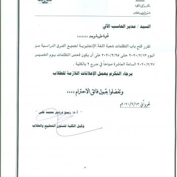 It was decided to open the door for grievances to the English Language Division from 13/2/2020 to 25/2020