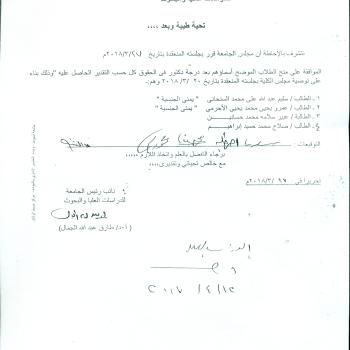 It was decided, God willing, to discuss the doctoral thesis submitted by the researcher / Saleh Omar Ahmed Hassan
