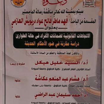 Discussion of the thesis of the researcher / Fahd Mater Faleh Awad Darwish Al-…