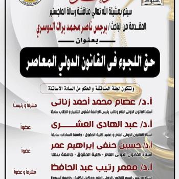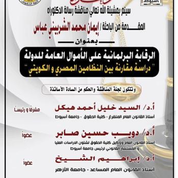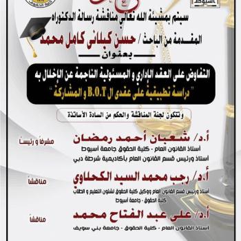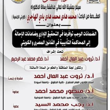 The Faculty of Law, Assiut University, discussed the researcher / Mohamed Hadi Mohamed Hadi Badi Al-Hajry on the subject of “The…