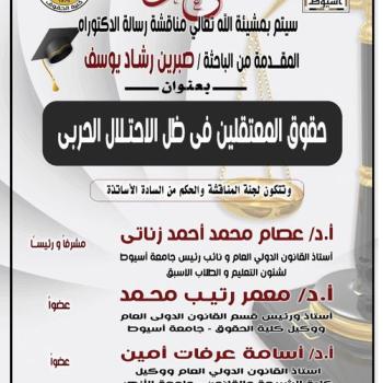 Discussion of the doctoral dissertation submitted by the researcher / Sabreen Rashad Youssef Entitled "The Rights of Detainees Under…