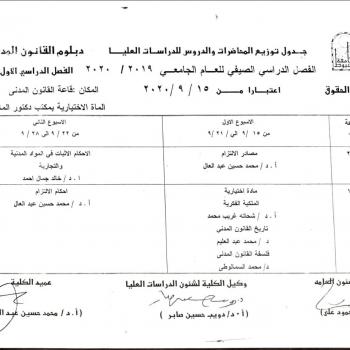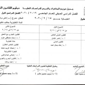Schedule of lectures and lessons for postgraduate studies for the summer semester, Diploma in Private Law, for the academic year 2019/2020As of 9/15/2020