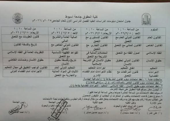Qualifying Examination Schedule for Postgraduate Diplomas, First Semester, Academic Year 2025/2026