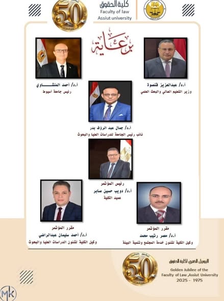 The conference coincides with the celebrations of the Faculty of Law at Assiut University's Golden Jubilee, marking fifty years since its establishment. This underscores the faculty's prestigious academic standing, its pioneering role in preparing qualified legal professionals, and its continuous contributions to supporting scientific research and serving the needs of society.