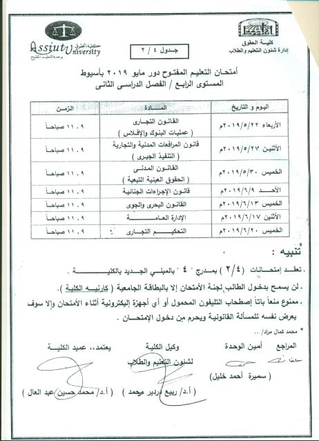 Open Education Exam Table May 2019 Fourth Level Second Semester