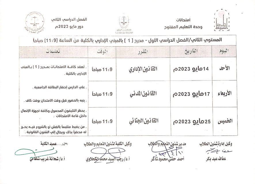 Open Education Program exam schedules for the academic year 2022/2023. 15 April 2023 Open Education Program exam schedules for the academic year 2022/2023. +2 كل التفاعلات: ٨١٨١