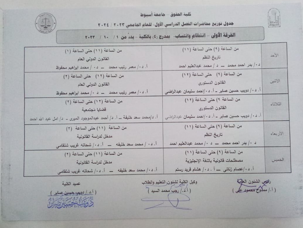 Schedules for distributing lectures for all teams, regularity and affiliation for the first semester of the academic year 2023-2024 25 September 2023