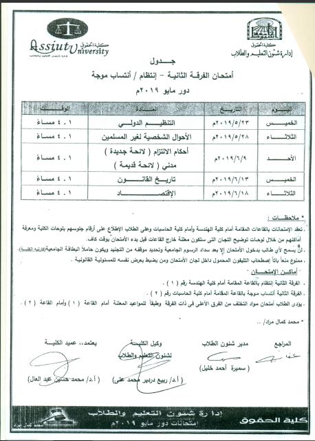 The second year exam schedule