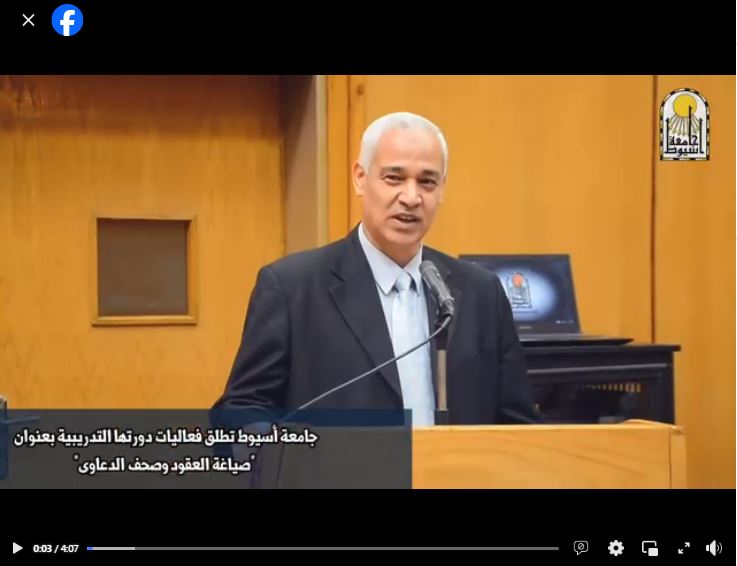 Video: The launch of the training course activities organized by the Center for Legal Studies at the Faculty of Law, Assiut University, on drafting contracts and claims papers.