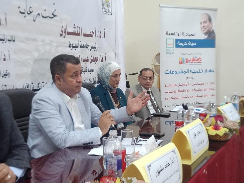 نظمت كلية الاداب بجامعة أسيوط، ندوة تعريفية حول الخدمات التي يقدمها جهاز تنمية المشروعات الصغيرة والمتوسطة ومتناهية الصغر"، تحت رعاية الدكتور أحمد المنشاوي رئيس جامعة أسيوط، والدكتور محمود عبد العليم نائب رئيس الجامعة لشئون خدمة المجتمع وتنمية البيئة، وتحت إشراف الدكتور مجدي علوان عميد كلية الآداب ، والدكتور حامد عبد الحميد مشهور وكيل الكلية لشئون خدمة المجتمع وتنمية البيئة، والدكتورة هبة الله جمال راشد وكيل كلية طب الأسنان لشئون خدمة المجتمع وتنمية البيئة، والأستاذ إيهاب عبد الحميد مدير جهاز تنمية المشروعات الصغيرة والمتوسطة ومتناهية الصغر فرع أسيوط، وبمشاركة أعضاء هيئة التدريس والطلاب بالكلية.