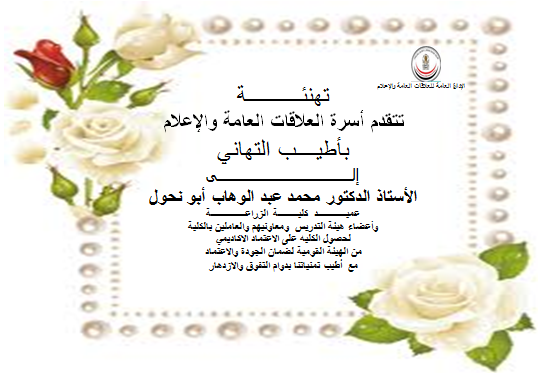 إدارة الإعلام تهنئ كلية الزراعة