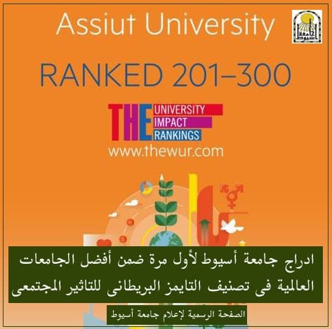 أعلن الدكتور طارق الجمال رئيس جامعة أسيوط إدراج جامعة أسيوط لأول مرة ضمن أفضل الجامعات العالمية في تصنيف التايمز البريطاني والخاص بتقييم الجامعات وفقاً للتأثير المجتمعى ، مشيراً إلى أن تلك هي المشاركة الأولى للجامعة فى ذلك النوع من التصنيف الذي يصدر لأول مرة عالمياً بالإضافة إلى تصنيفات متخصصة في عدد من المجالات الأخرى والذي يتضمن تقييمه أكثر من 25 ألف جامعة من 76 دولة على مستوى دول العالم يُعلن الأفضل منها .