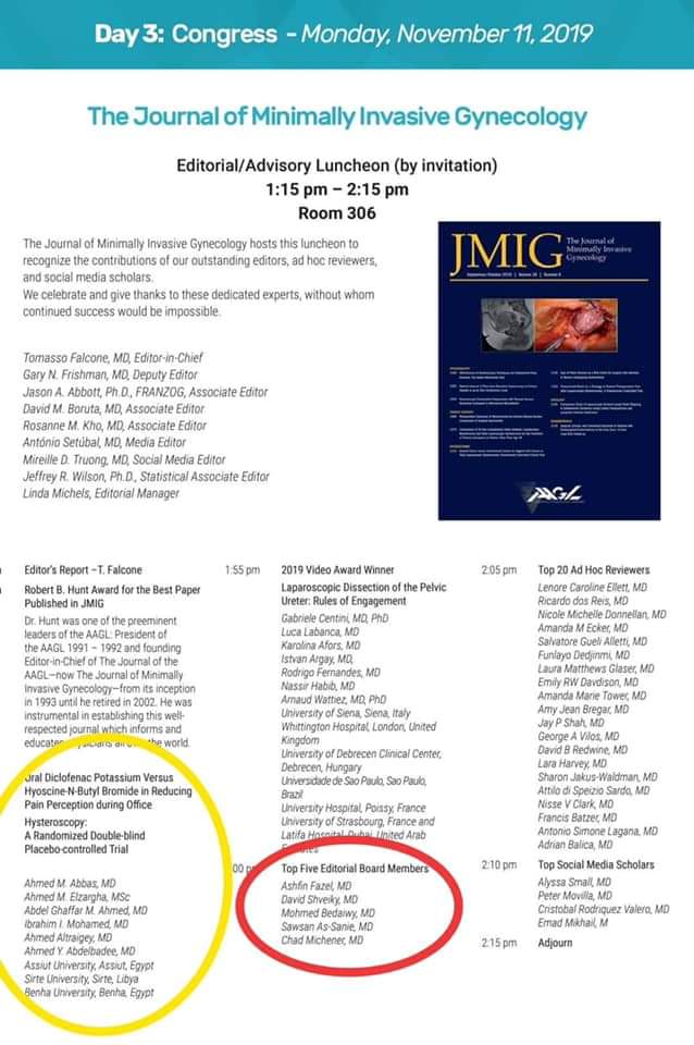 وفى ضوء هذا التصريح أعلن الدكتور أحمد المنشاوي نائب رئيس الجامعة لشئون الدراسات العليا والبحوث عن اختيار الدكتور محمد على بديوى الأستاذ بقسم أمراض النساء والتوليد بكلية الطب بجامعة أسيوط ضمن أفضل خمسة محررين بمجلة التدخل الجراحي الدقيق لأمراض النساء "Journal of Minimal Invasive Gyneology" وهي المجلة الأولى على مستوى العالم المتخصصة في مناظير أمراض النساء ، وذلك وفق ما أعلنته الأكاديمية الأمريكية لجراحى مناظير النساء AAGL: AMERICAM Academy of Gynecological Laparoscopists فى مؤتمرها الخامس والأربعين والمنعقد في مدينة فانكوفر بكندا في نوفمبر الجارى .
