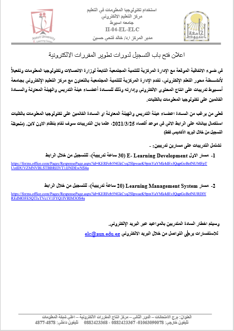 للاستفسارات يرجى التواصل من خلال البريد الالكتروني elc@aun.edu.eg
