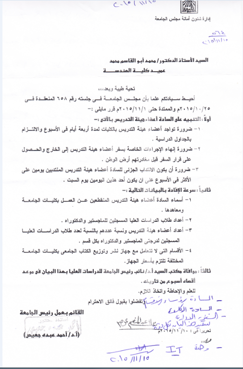 اعلان هام خاص بحضور السادة اعضاء هيئة التدريس 16 نوفمبر 2015 اعلان هام خاص بحضور السادة اعضاء هيئة التدريس