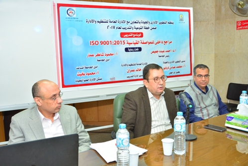 نظم التطويرالإداري و الجودة بالتعاون مع الإدارة العامة للتنظيم والإدارة البرنامج التدريبي للتأهيل كمراجع داخلي للمواصفة القياسية أيزو 9001 الإصدار 2015 , فى الفترة من 28 : إلي 30 من مارس الجاري , وذلك تحت رعاية السيد الاستاذ الدكتور / أحمد عبده جعيص رئيس الجامعة , والسيد الاستاذ وكيل أول الوزارة / محمود شاكر أمين الجامعة , وبحضورالسيد وكيل الوزارة الاستاذ / محمود بخيت أمين الجامعة المساعد و ممثل الإدارة العليا للجودة , والسيد الاستاذ / خالد عمران مدير إدارة التدريب , والسيد / محمد عباس دردير مدير التطوير الإداري و الجودة و كبير المراجعين بالجامعة , وذلك بمشاركة نحو 30 متدرباً.