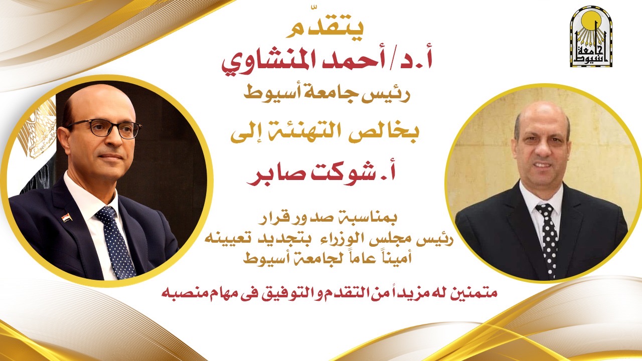 الدكتور المنشاوي يهنئ الأستاذ شوكت صابر لتجديد تعيينه أمينًا عامًا لجامعة أسيوط